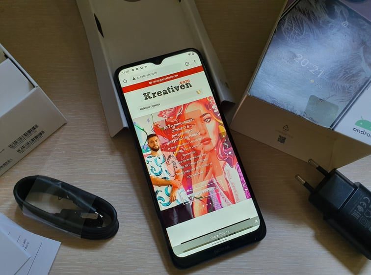 Макар че изглежда лек и тънък, за което допринася пластмасовия корпус, апаратът е здрав и устойчив. Това, в добавка с издръжливата му батерия, го нарежда сред едни от най-практичните смартфони на пазара в момента. Отворихме кутията и видяхме, че Nokia G10 идва в комплект със зарядно, USB Type-C кабел и кратко ръководство.