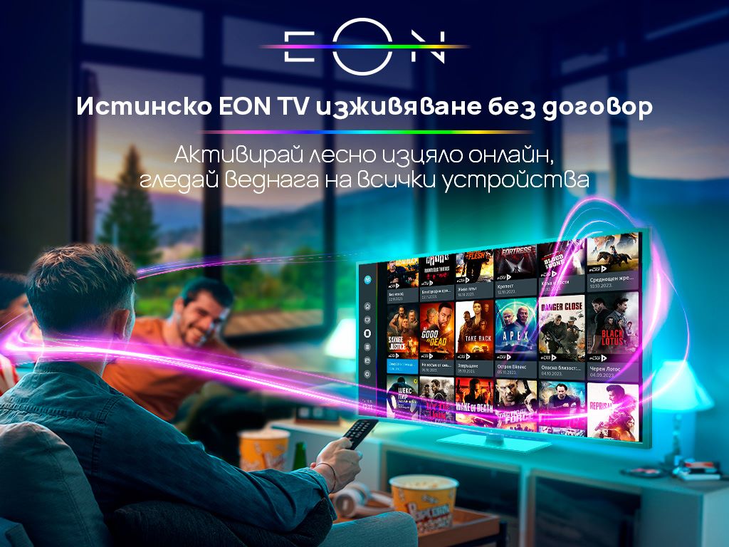 Независимо дали сте в движение или вкъщи, интерактивната телевизия EON от Vivacom гарантира, че никога няма да пропуснете любимия си сериал или спортното събитие, което искате да гледате точно днес. Иновативната платформа на телекома е достъпна за всички потребители без договор, без кабели, с изключително лесна активация изцяло онлайн. По този начин съществуващите и новите клиенти на Vivacom могат да опитат пълното EON изживяване по всяко време, навсякъде и на всяко устройство. Единственото условие е да имат интернет връзка, без значение дали е от локална или мобилна мрежа.