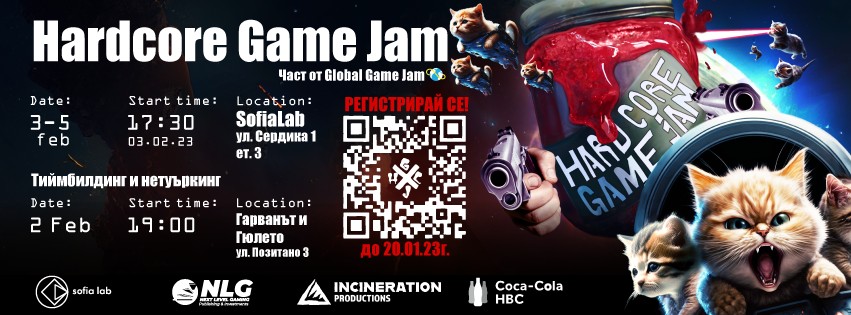 В рамките на един Hardcore game jam уикенд (3-5 февруари) дизайнери, програмисти, саунд дизайнери и други професионалисти, не само от технологичната сфера, ще се съберат, за да се забавляват и изпитат уменията си в създаването на прототипи на игри за изключително кратък период от време – само 48 часа. Hardcore Game Jam е отворен за всички, които се интересуват от темата – входът за хакатона е свободен, но изисква предварителна регистрация – http://bit.ly/hcgj-23.