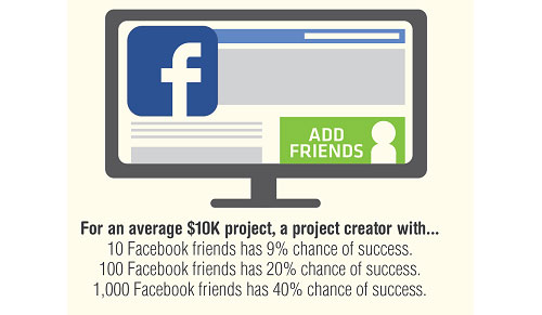 Оказва се, че броят контакти във Facebook на инициатора на идеята има значително влияние върху успеваемостта на проектите.
