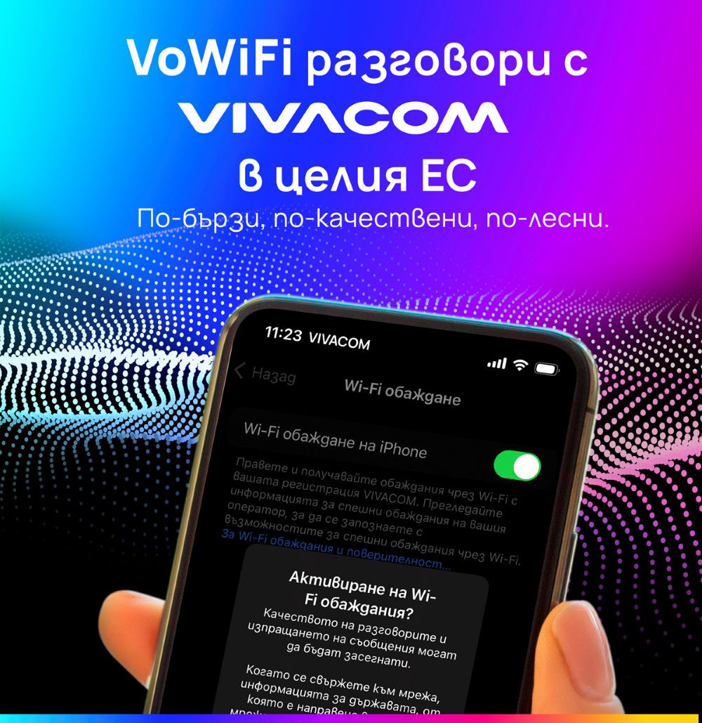 Vivacom предлага на своите клиенти иновативната услуга VoWiFi (Wi-Fi Calling), която им позволява да осъществяват обаждания през Wi-Fi мрежа лесно и удобно. Обажданията използват включените минути в абонаментните планове на потребителите, без допълнителни такси и без значение от вида мобилен план, който са избрали.