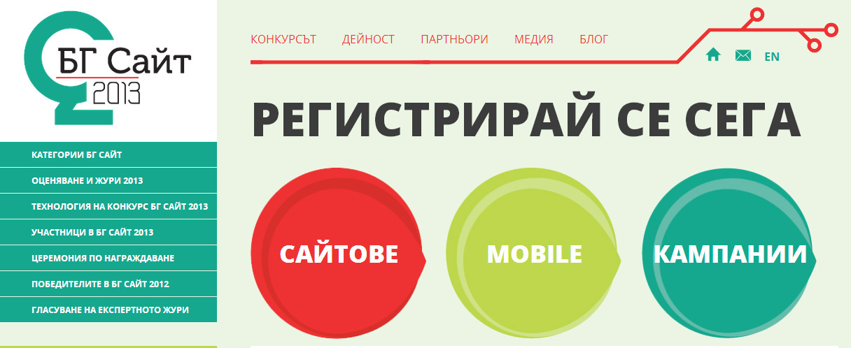 На 30 май (четвъртък) 2013 г., в 10.00 ч. стартира ранната регистрация в престижния конкурс БГ Сайт 2013 – на http://bgsite.org/concurs/reg/. Тя ще продължи до 30 юни 2013. През това време кандидатите ще могат да регистрират своите сайтове срещу 30 лв. всеки.