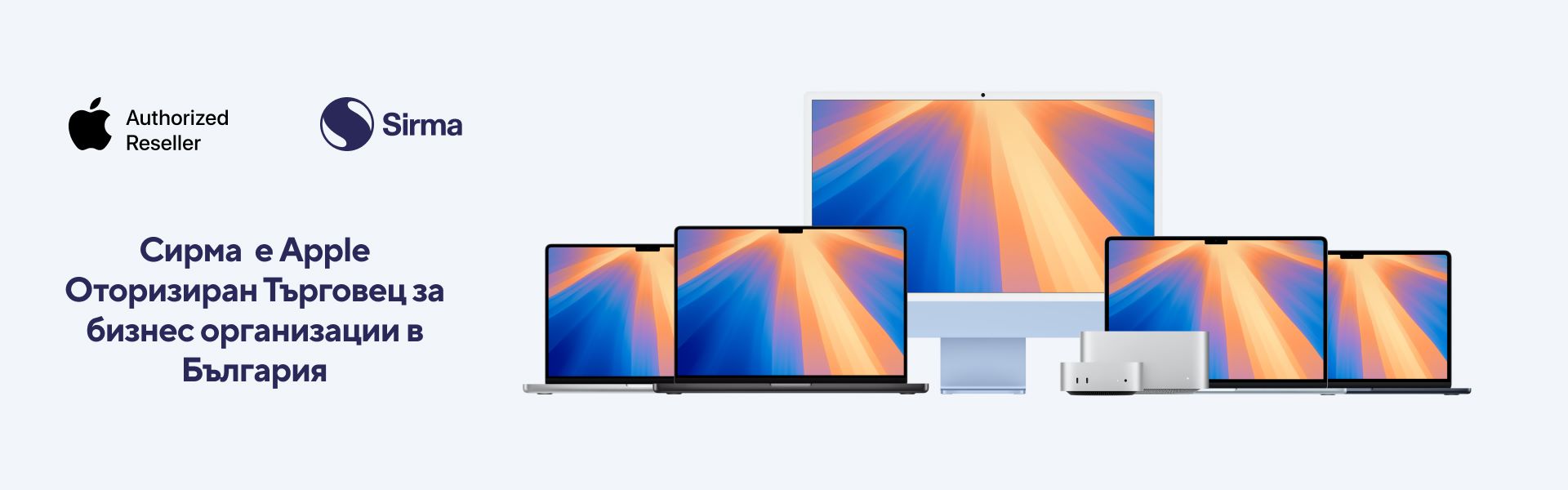 От 1 април 2025 г. Сирма Груп Холдинг АД (Сирма), водещ разработчик на софтуер и доставчик на технологични решения, е новият Apple Оторизиран Търговец за бизнес потребители и публични организации в България. Тази възможност ще позволи на Сирма да предлага директно цялата гама от иновативните продукти на Apple на бизнес клиенти (В2В) и държавните институции (B2G) в България. Новото ни партньорство (като част от Device Enrollment Program-DEP) засилва ангажимента на Сирма да предоставя технологични устройства от най-висок клас на корпоративния, МСП и обществени сегменти.