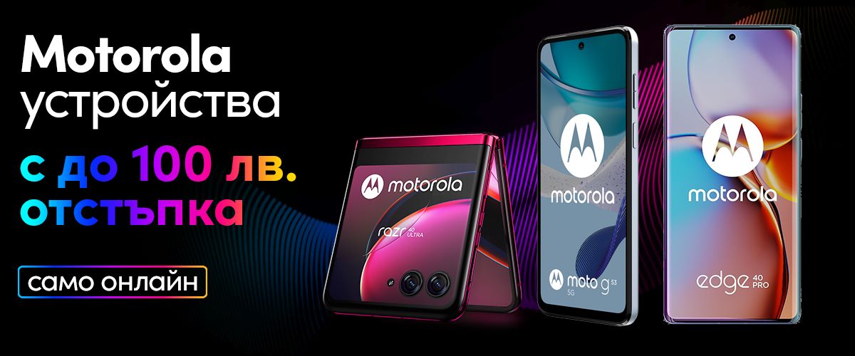 Специалните есенни оферти в мрежата на Vivacom продължават с отстъпки до 100 лева на устройства Motorola, които ще бъдат налични до 17 октомври в онлайн магазина на телекома. Промоционалните модели могат да бъдат закупени в брой или на лизинг при сключване на договор за план Unlimited. Сред тях попада селекция от отлични 5G смартфони – Motorola G53, Motorola Edge 40 Pro и разгъващият се Motorola Razr 40.