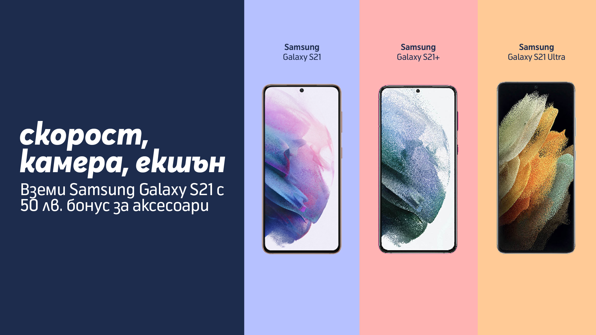 Теленор България предлага на своите клиенти базови аксесоари на стойност до 50 лева с всяка покупка на Samsung Galaxy S21, S21+ или S21 Ultra, като комплект към закупения смартфон, до 30 юни.