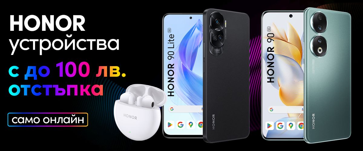 До 31-ви август Vivacom предлага на своите клиенти атрактивни отстъпки до 100 лева от цената на избрани устройства HONOR в комбинация с план Unlimited, като промоцията е валидна само в онлайн магазина на телекома. Сред намалените продукти са и най-новите смартфони – HONOR 90 и HONOR 90 LITE, като LITE моделът е в комплект с безжичните слушалки HONOR EARBUDS X5.