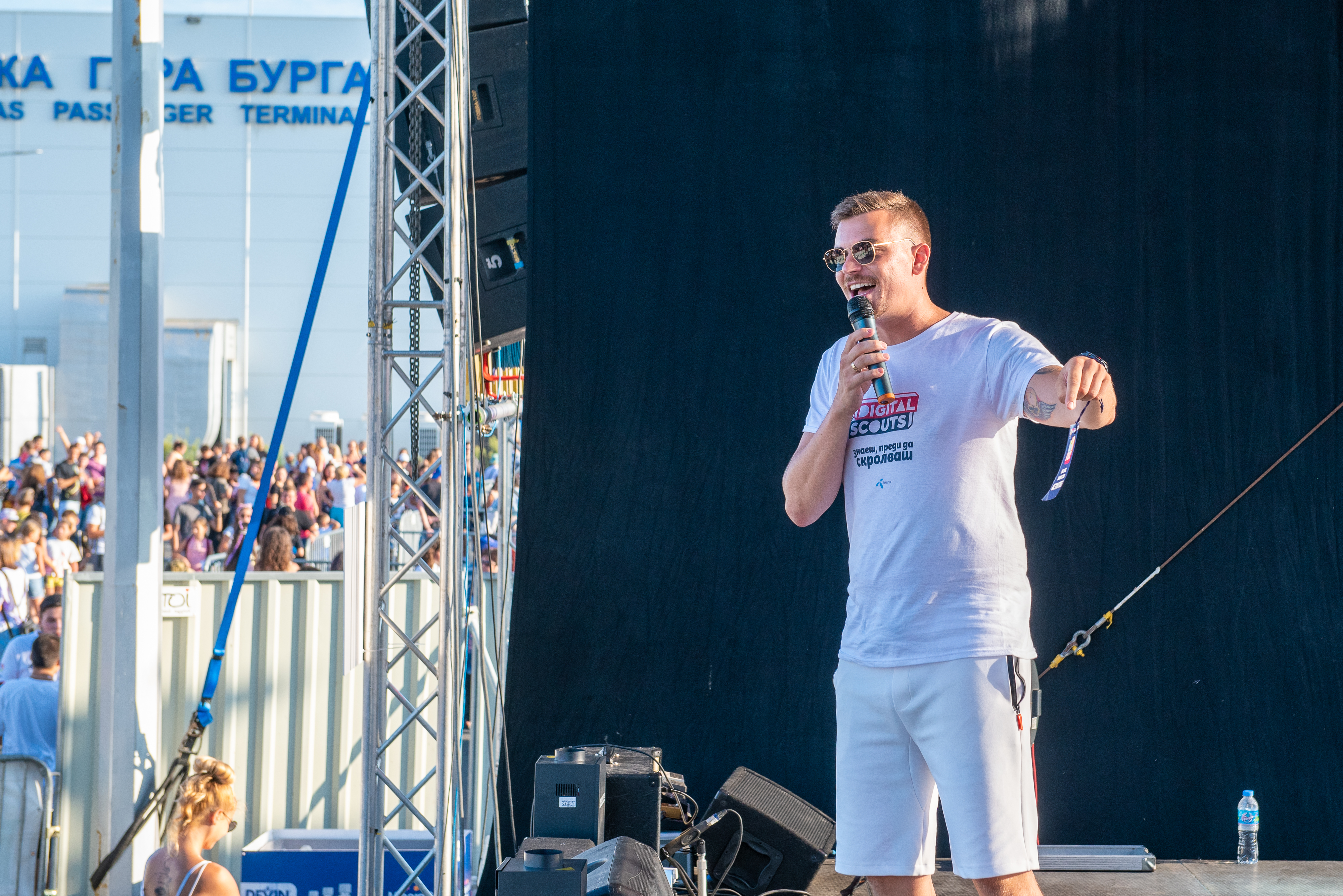 Digital Scouts бе част от младежкия летен фестивал TEEN BOOM FEST, който тази година се проведе през уикенда на Морската гара в Бургас. По време на фестивалните дни, феновете на сърфирането в нета проявиха голям интерес към приложението и към инстаграм предизвикателството, подготвено от Теленор България. Техен верен помощник бе любимият на всички тийнейджъри – Haha_bg. Той помагаше на всички с полезни съвети за играта, както и за това да научат повече за безопасността в интернет.