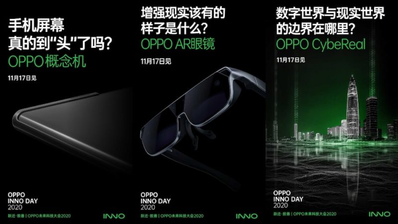 INNO Day на OPPO е с дата 17 ноември, а компанията подразни любопитството на феновете си с AR очила и концептуален модел сгъваем смартфон. Домакин на събитието ще е Китай, а в поседния тийзър се твърди, че вграждането на множество сензори ще даде на потребителите възможност за потапящо преживяване с OPPO AR Glasses.