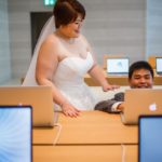 Може би точно това са си е помислили Джермин Уей и Чиа Суат Хуан, когато на 3 юни отиват рано сутринта в един от магазините на Apple, за да си направят сватбени снимки. Двойката пристигнала 30 минути преди магазина да отвори и изчакала докато шаферите им убедят мениджъра да им позволи да се снимат вътре. Когато магазинът отваря врати, двамата младоженци преминали по пътеката между изложените устройства, а любопитните посетители им ръкопляскали и ги поздравявали.