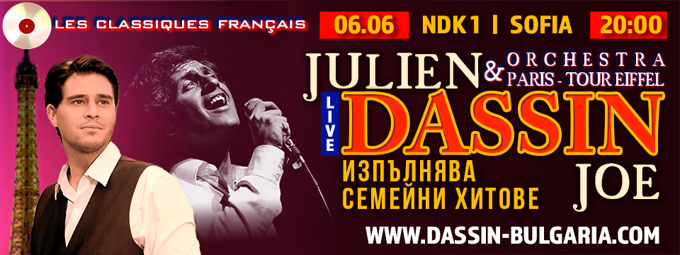 Жулиен Дасен, синът на Краля на френския шансон Жо Дасен, ще представи на 6 юни от 20 ч. в зала 1 на НДК оригиналния си авторски спектакъл с легендарните семейни хитове заедно с Paris Tour Eiffel Orchestra.