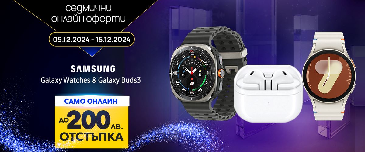 До 15 декември Vivacom предлага специални предколедни отстъпки до 200 лева от цената на специална селекция от смарт аксесоари Samsung. Клиентите могат да избират от премиум часовниците като Samsung Galaxy Watch Ultra 47mm, Samsung Galaxy Watch7 40mm и Samsung Galaxy Watch7 44mm, смарт гривната Samsung Galaxy Fit3 и безжичните слушалки Samsung Galaxy Buds3. Промоционалните условия са валидни за всички клиенти в онлайн магазина на Vivacom.