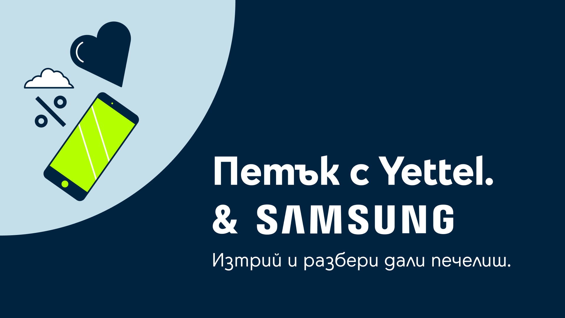 Всеки петък потребителите на приложението Yettel Bulgaria имат възможността да опитат късмета си в играта „Петък с Yettel“ и само през април да спечелят отстъпка до 200 лева от редица смартфони на Samsung, както и 15% отстъпка от Samsung аксесоари като умни часовници и слушалки.
