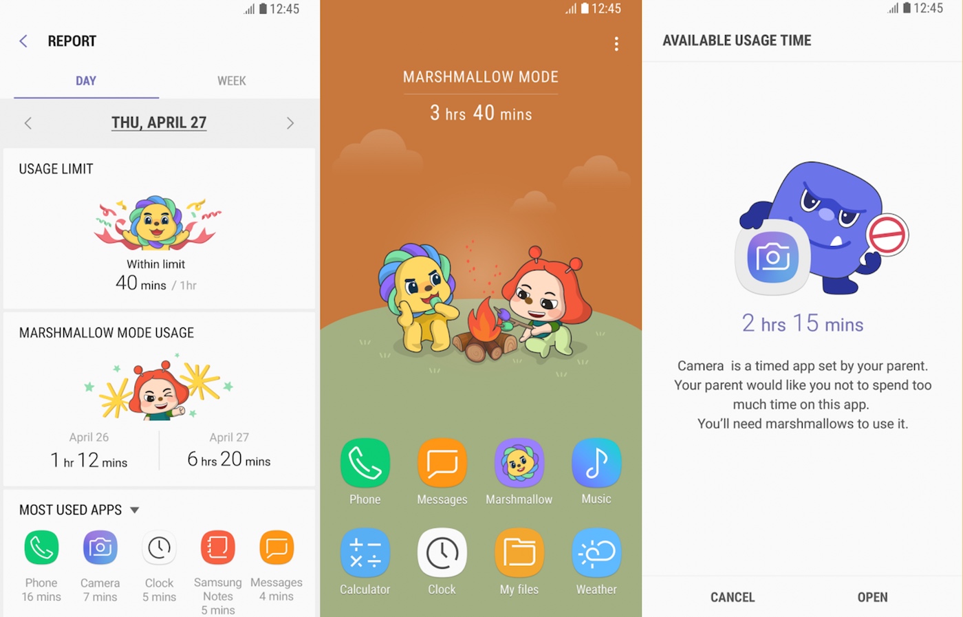 Samsung има идея как можете да насърчите децата си да използват отговорно мобилните си устройства. С приложението Marshmallow, те ще печелят точки когато следват свой индивидуалин план за използване на телефона. При инсталирането и пускането му, родителите ги ограничават до ползването на осем приложения, като могат да филтрират подходящите и неподходящите за тях и да зададат време за лягане.