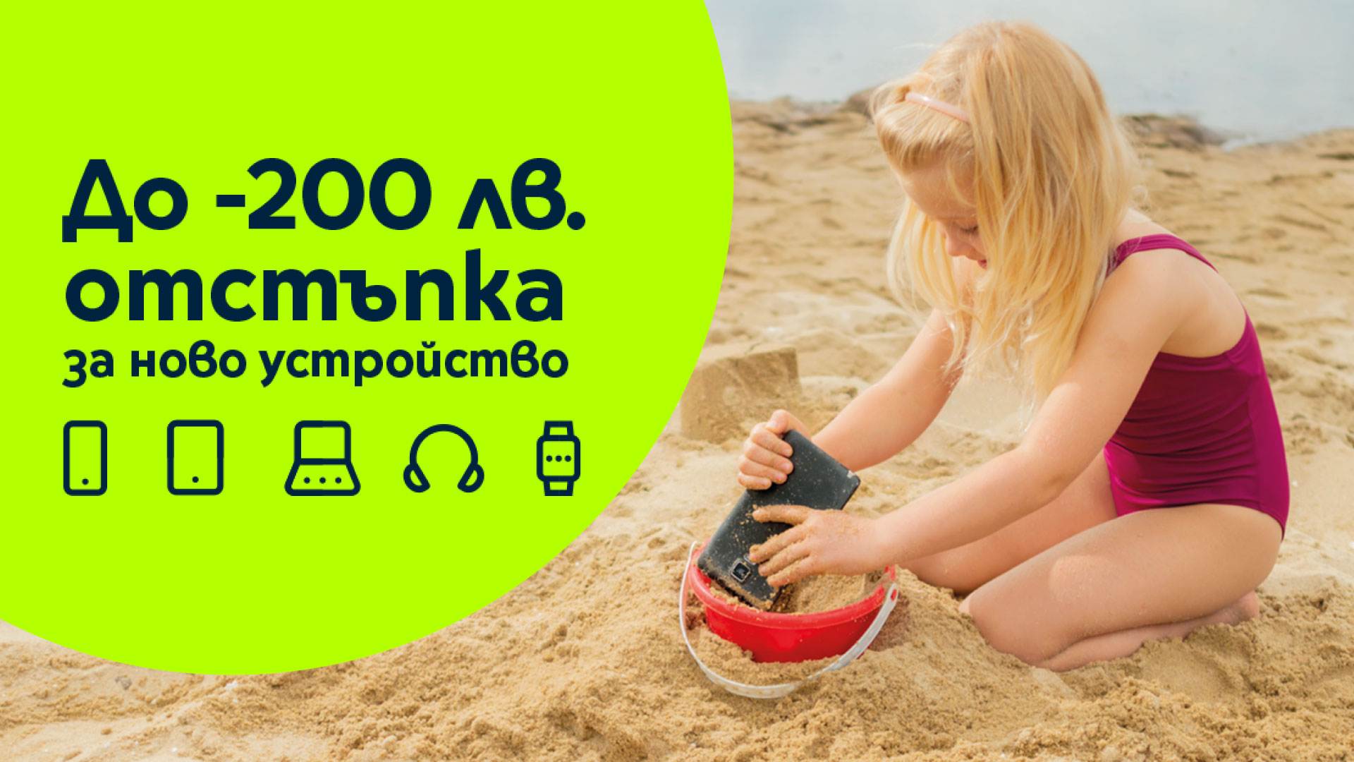 Голямото намаление важи за избрани устройства при плащане в брой или на лизинг и комбиниране с план Тотал Макс 39.99 за смартфоните и Интернет + 26.99 за таблетите и лаптопите до 30 септември или до изчерпване на количествата