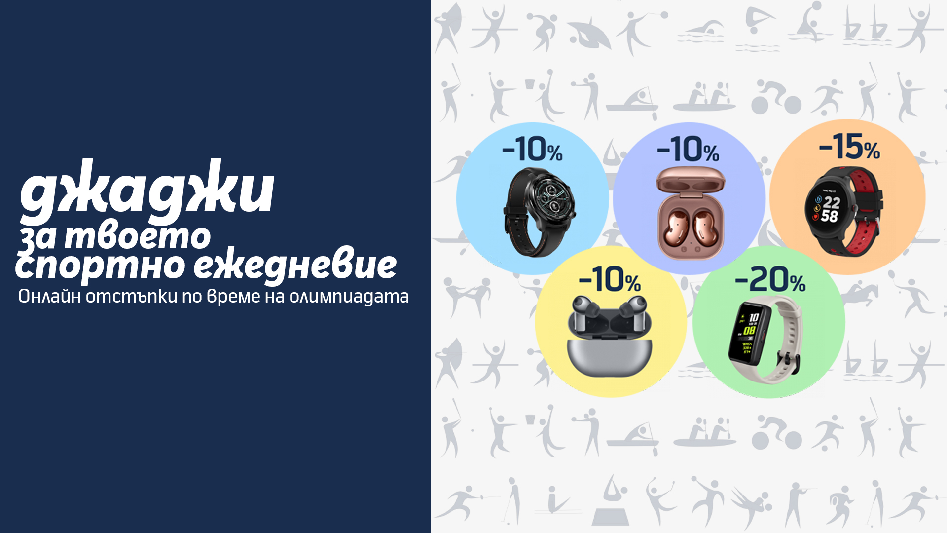 Отстъпката от цената е валидна за различни аксесоари като смарт часовници, гривни, безжични слушалки и др. За да се възползват от нея, при покупка от онлайн магазина клиентите е нужно да въведат код OLYMPIC. Отстъпките са валидни само при покупка в брой и не важат за покупка на лизинг.