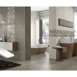 Ефектът на цветовете в банята се подчертава от интересните текстури на плочките. Особено предпочитани в момента са декоративните плочки в стил Терацо мозайка. Те произхождат от Италия преди повече от 500 години, а днес са най-новият горещ тренд в интериорния дизайн на банята. Такава е например серията Medley by Ergon.