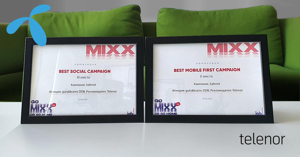 Теленор отново беше отличена за кампаниите си за безопасен интернет. Компанията получи две награди от IAB Mixx Awards 2020, в категориите Best Mobile First Campaign и Best Social Campaign. Освен това телекомът беше награден на шестото издание на наградите на B2B Media Group, където получи признание в категория „Социално отговорна компания“.