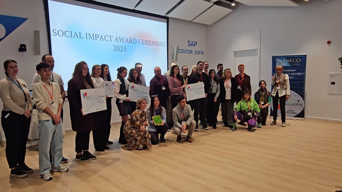 Три младежки екипа бяха отличени с първите в България призове „Награда за социално въздействие 2025“ за своите идеи и решения с потенциален и значим принос за обществото. Големите победителите са H2Optimized – система за събиране и пълноценно използване на дъждовната вода, Програмата за граждански бюджети, която има за цел да овласти гражданите да използват по-ефективно обществените средства, както и Leora – стартъп, разработил стени от мъх, които пречистват ефективно въздуха в градовете.
