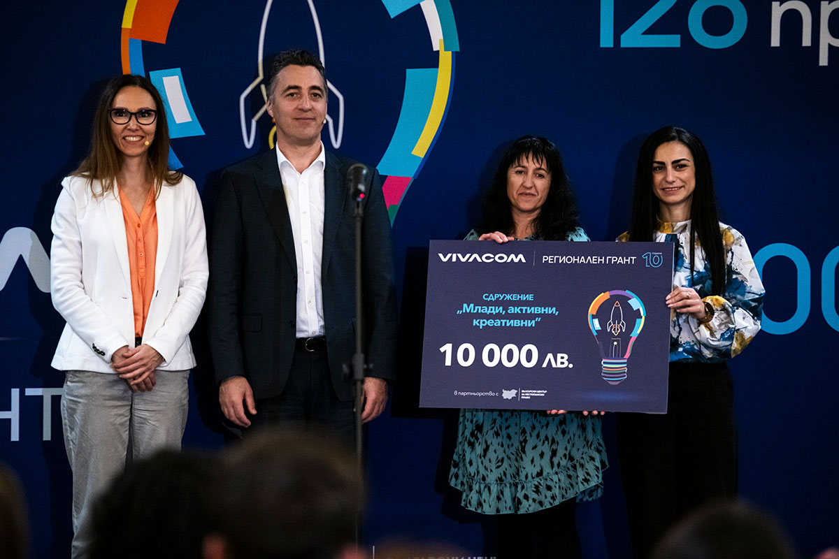 Програмата Vivacom Регионален грант е най-мащабната социално отговорна инициатива на телекома. За десет години тя е подкрепила 128 проекта от цялата страна с общо над 700 000 лв. В юбилейното си издание програмата подкрепи 10 проекта в областта на образованието и опазването на околната среда с общо 100 000 лв. Vivacom Регионален грант се реализира в партньорство с Български център за нестопанско право (БЦНП).
