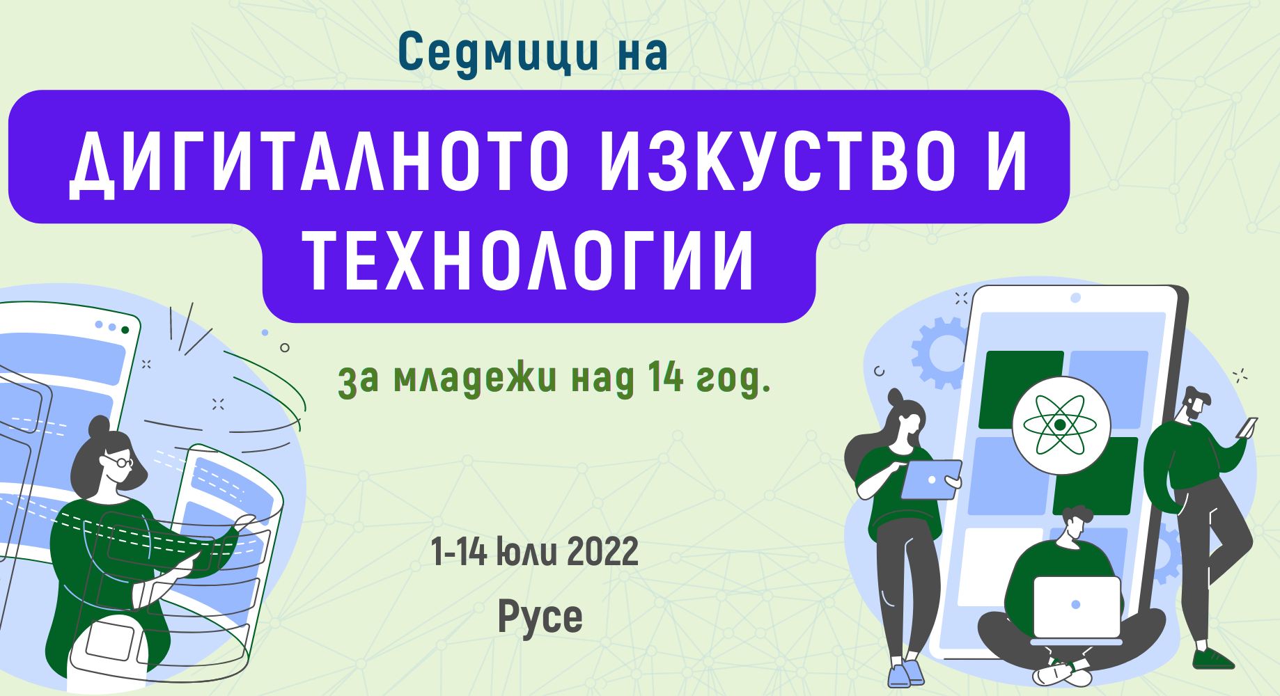 Инициативата Седмици на дигиталното изкуство и технологии е на русенското сдружение Startup Factory и ще се проведе от 1 до 14 юли. Участието във всички обучения и работилници е напълно безплатно, като младежите могат да посетят едно или няколко от събитията, в зависимост от интереса си. Необходима е предварителна регистрация в страницата на инициативата, в която са описани подробно лекторите, темите, мястото и часа на провеждане: https://bit.ly/3Gz7XWF