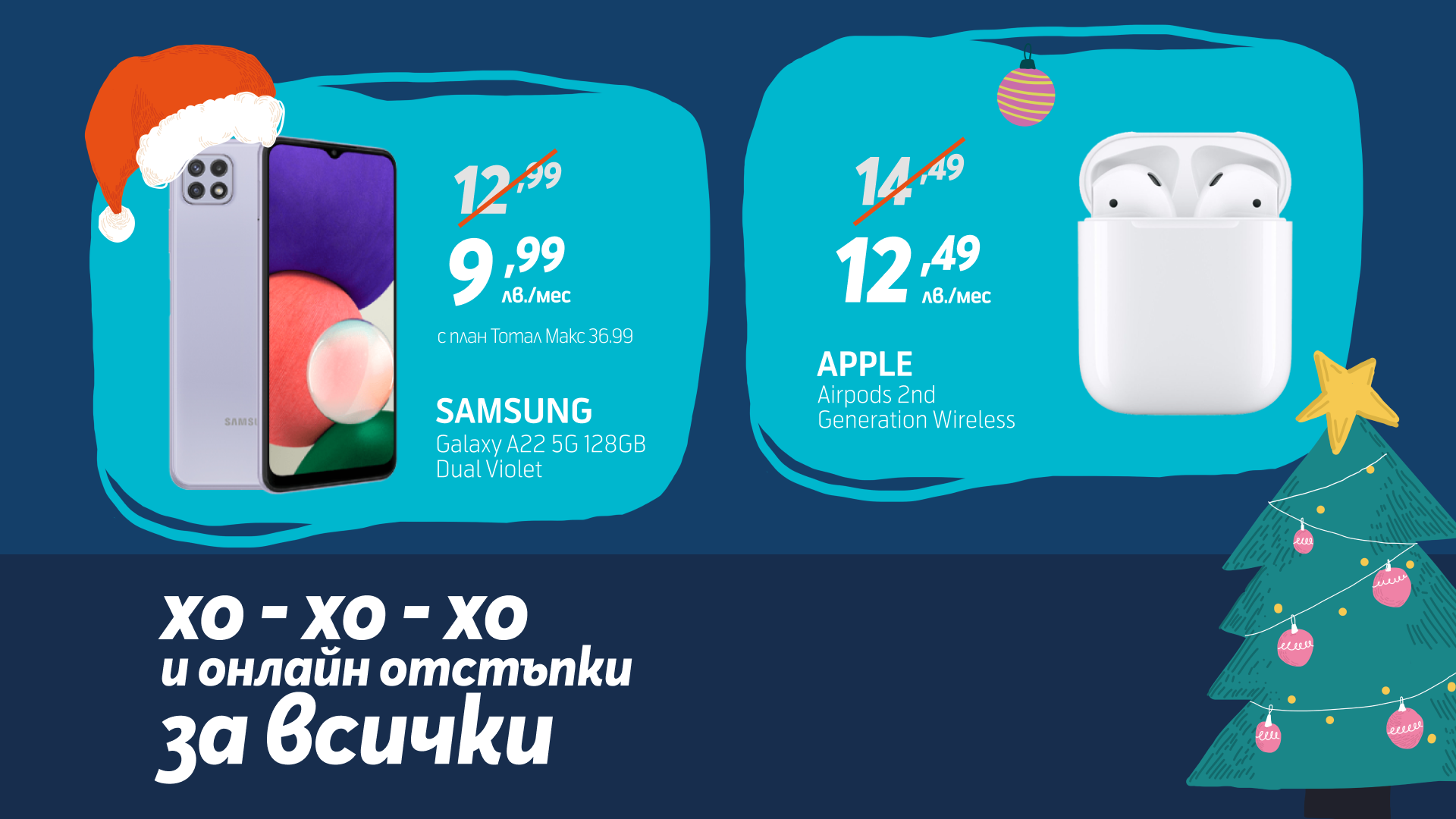 В онлайн магазина на Теленор можете да откриете и Apple AirPods безжични слушалки, второ поколение, и така да сте сигурни, че ще чуете любимите си коледни мелодии с кристално чист звук, за допълнително коледно преживяване.