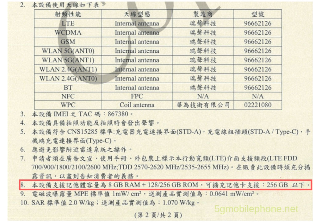 Документите са издадени от тайванската NCC и разкриват, че Р30 ще има 6 и 8 GB оперативна и 128 GB вградена памет, докато Pro версията ще разполага с 8 GB оперативна и 128/256 GB вградена памет. Според предишни данни, двете устройства ще работят с чипсет Kirin 980, а благодарение на самата компания знаем, че камерата ще е перископна. Третият модел, който ще завърши линията е P30 Lite и се очаква да бъде с номер MAR-LX2, но документите не съдържат информация относно вътрешните му елементи.