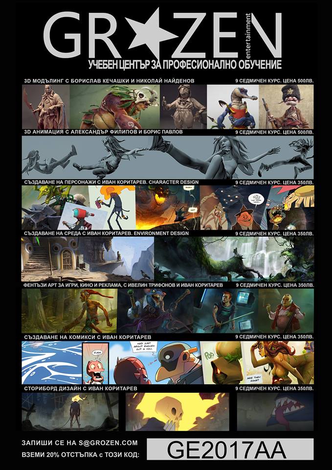 Специално за читателите на Kreativen.com персоналният код GE2017AA дава 20% отстъпка за всички курсове в учебен център ГРОЗЕН ЕНТ. За допълнителна информация пишете на office@pixelmedia.bg.