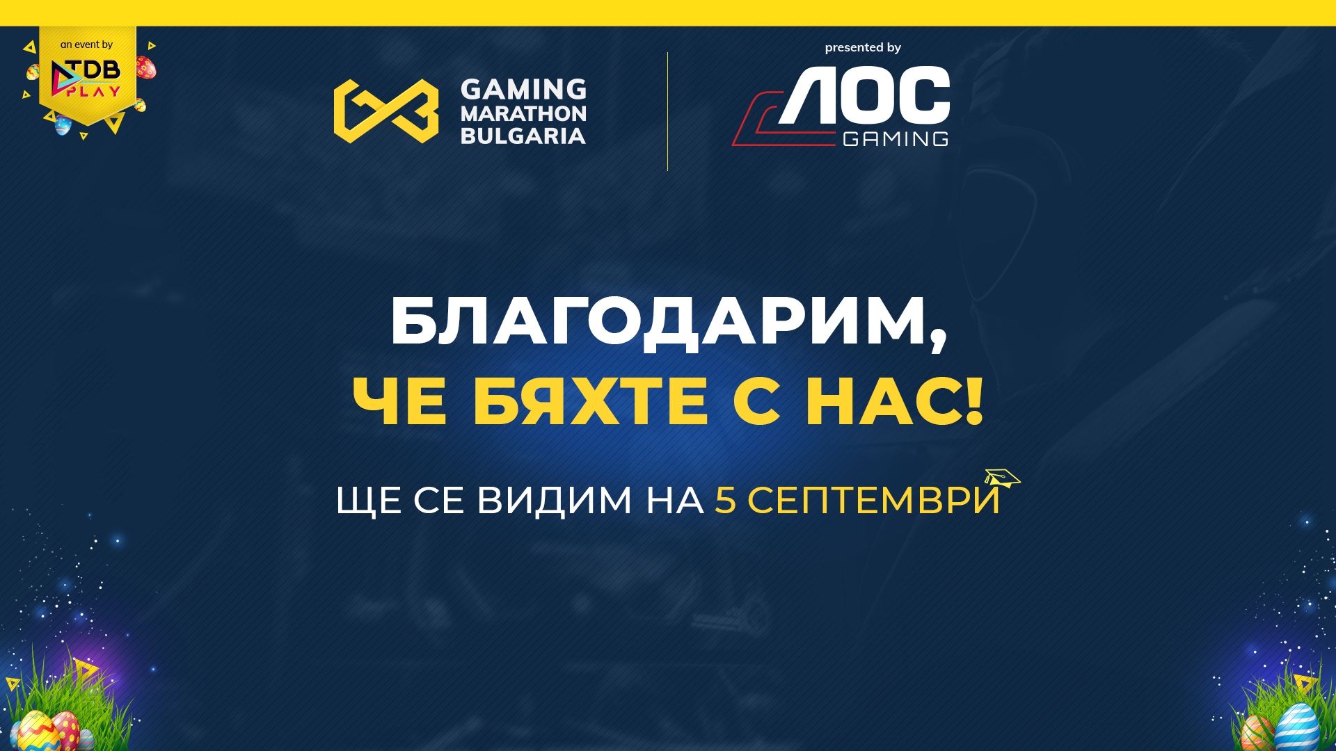 Следващото издание на Българския Гейминг Маратон ще бъде на 5 септември и организаторите TDB Play – компания с фокус във видеоигрите, електронните спортове и дигиталното съдържание, в партньорство със световния лидер при гейминг мониторите – AOC, обявиха един от акцентите на фестивала – “Балансът между видеоигрите и ангажиментите”.