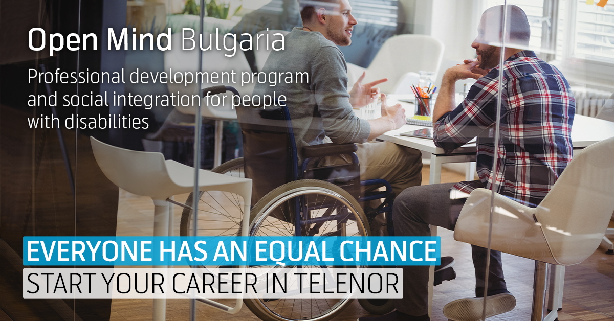 Теленор дава начало на петото издание на програмата за кариерно развитие за хора с различни възможности Open Mind. Компанията открива нови позиции в седем различни направления. Инициативата дава възможност на хора с увреждания да повишат своята професионална квалификация и конкурентоспособността си на трудовия пазар, както и да развиват и показват способностите и уменията си в реална работна среда. Вече четири години програмата реализира отлични резултати за приобщаване на хората с увреждания към пазара на труда в страната.