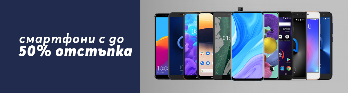 Смартфони с до 50% отстъпка при покупка или взимане на лизинг с план Тотал+ 29.99 или по-висок са едни от най-популярните модели на водещи производители като Huawei, Samsung, Honor, Nokia, Alcatel и др. Сред предложенията са Huawei P30 Lite, Nokia 7.2, Samsung Galaxy A51 и др. Част от предложението е Alcatel 3, който е на цена от 1 лв. при плащане в брой, с двугодишен договор за Тотал+ 29.99.