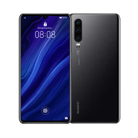 Huawei P30 е с 6.1-инчов OLED дисплей със съотношение 19.5:9 и резолюция 2340×1080 пиксела. На гърба му е тройна Leica камера, с основна камера с 40MP сензор, широкоъгълна камера с 16MP сензор и 8MP телефото камера с троен оптичен зуум. Предната камера е с 32MP сензор.
