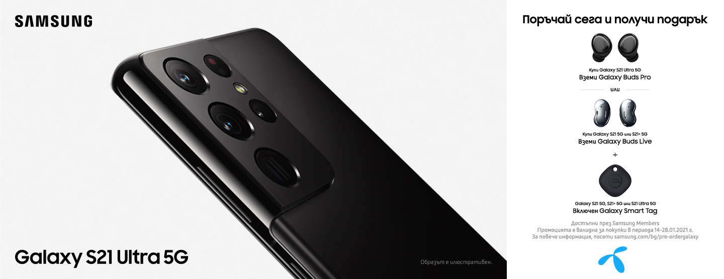 - Първите 150, регистрирали покупката на своя Galaxy S21 Ultra, ще получат един брой слушалки Galaxy Buds Pro и един брой Smart Tag.
