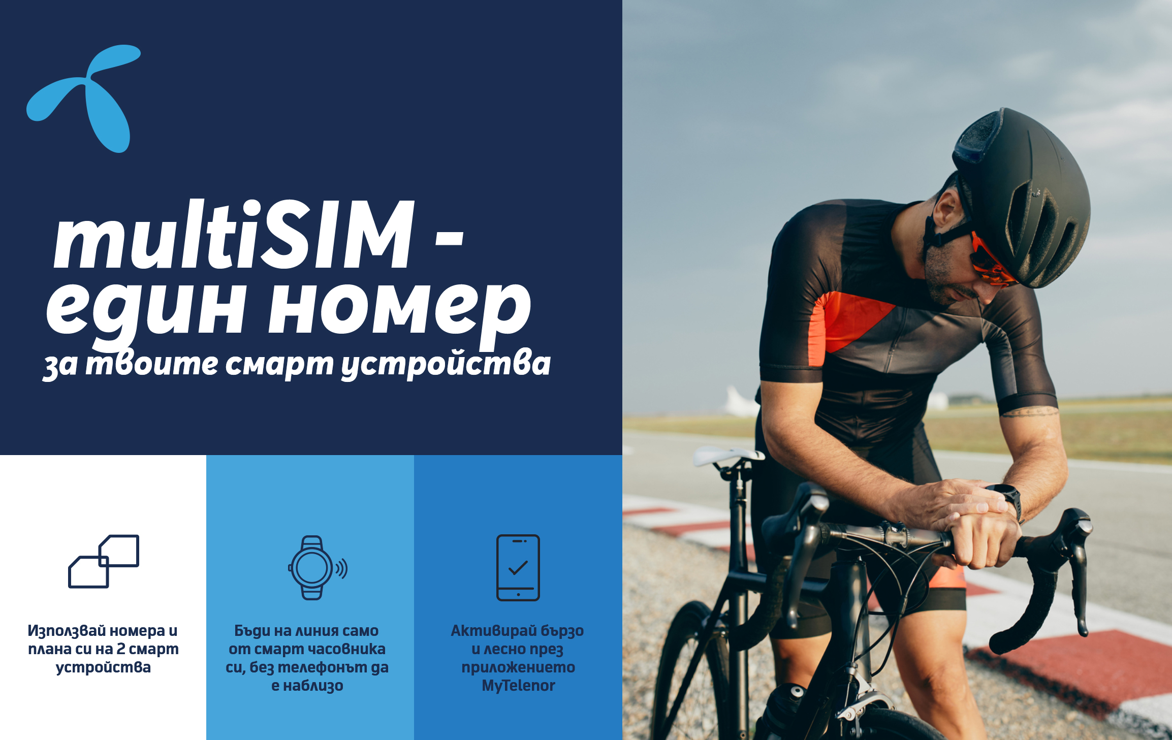 Теленор предлага за всички свои клиенти, ползващи абонаментен план с включена мобилна гласова услуга, новата си допълнителна услуга multiSIM. Благодарение на нея е възможно използването на един номер едновременно на смартфон и смарт часовник навсякъде и по всяко време в България. Услугата може да се активира през приложението MyTelenor Bulgaria и е с месечна такса от 4,99 лева с ДДС.
