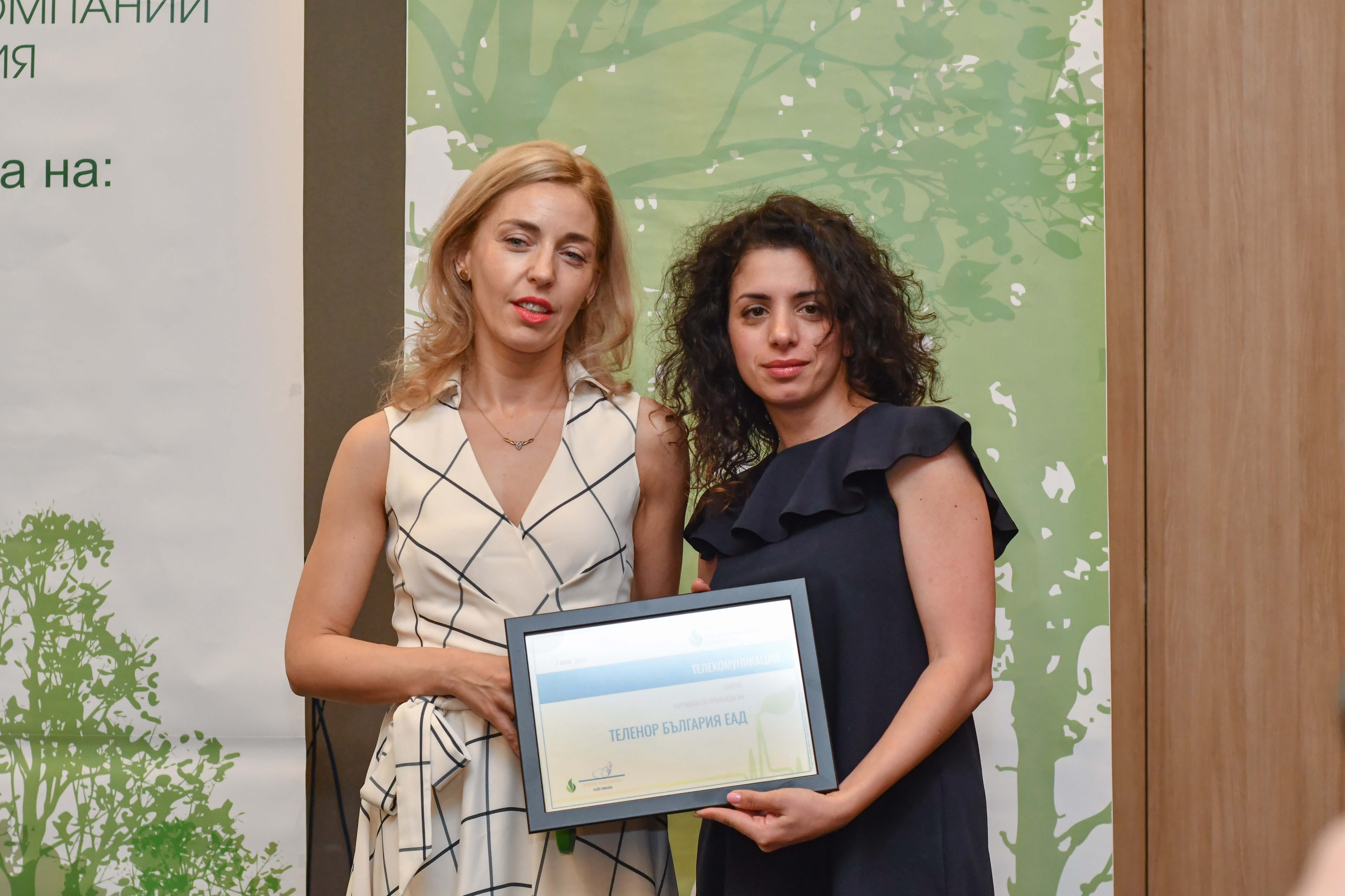 Теленор получи първа награда в категория „Телекомуникации“ в тазгодишния конкурс „Най-зелените компании в България“ на b2b Media. Конкурсът се провежда за девета поредна година и отличава компаниите, които са последователни в инициативите си за опазване на околната среда.