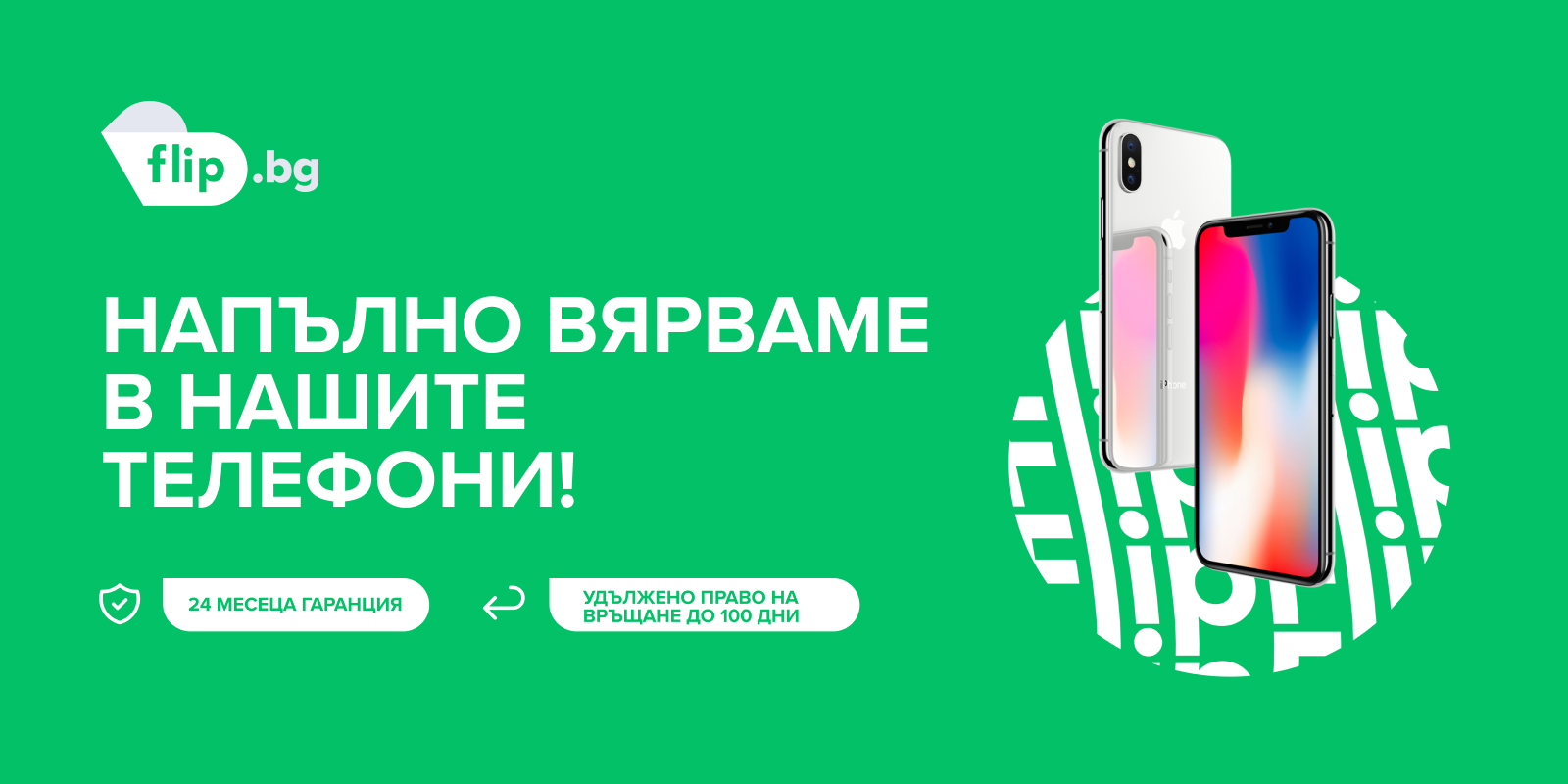24 месеца гаранция и удължен период от 100 дена за право на връщане предлага Flip.bg