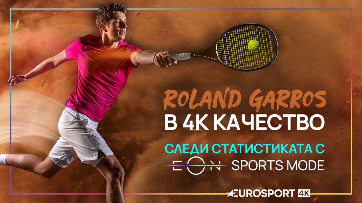 Vivacom ще излъчи финалите на Откритото първенство на Франция по тенис в 4K качество по спортния канал Eurosport 4K, част от EON. Освен всички мачове с финалистите, любителите на тениса ще могат да следят на живо подробна статистика и данни с EON Sports mode.