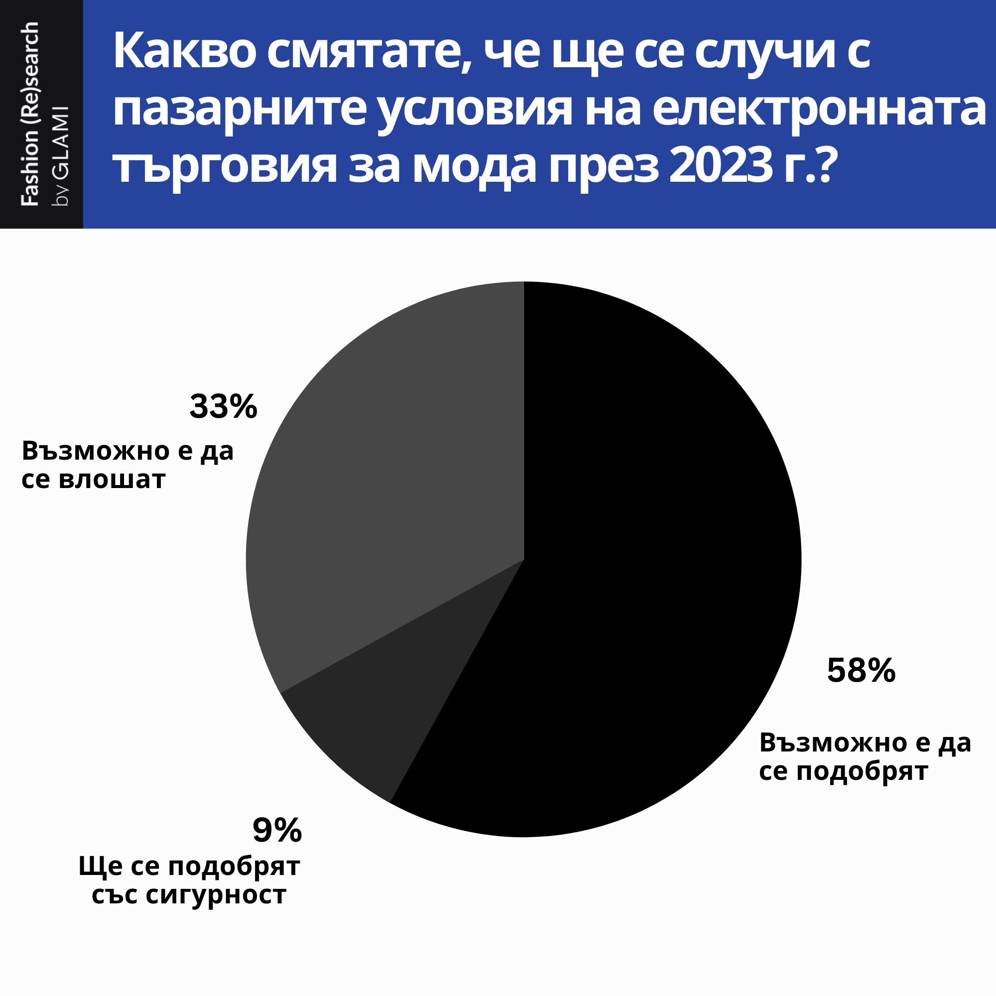 Според данни от проучването на GLAMI, 58% от любителите на модата и онлайн магазините са оптимистични за развитието на индустрията през следващата година и смятат, че ще забележим значително развитие на сферата. От друга страна, 33% не са толкова убедени в положителния резултат, който предстои.
