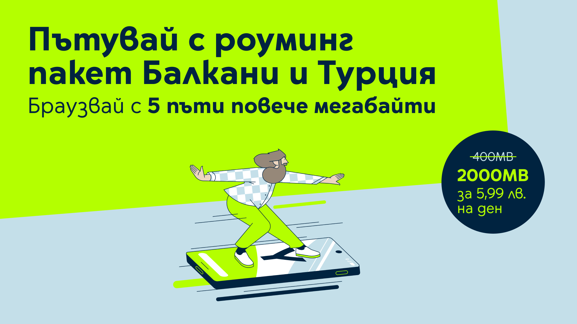 Пакетите „Балкани и Турция“ включват страните Албания, Босна и Херцеговина, Северна Македония, Сърбия, Черна гора и Турция. Те са дневни, валидни за 24 часа, като таксата се начислява, когато потребителят се свърже с мобилна мрежа в някоя от страните в зона „Балкани и Турция“. Това позволява на клиентите да ги активират още преди да тръгнат на пътуване и да не се притесняват от излишни разходи. По този начин няма нужда да спират и пускат избрания пакет преди и след всяко пътуване.