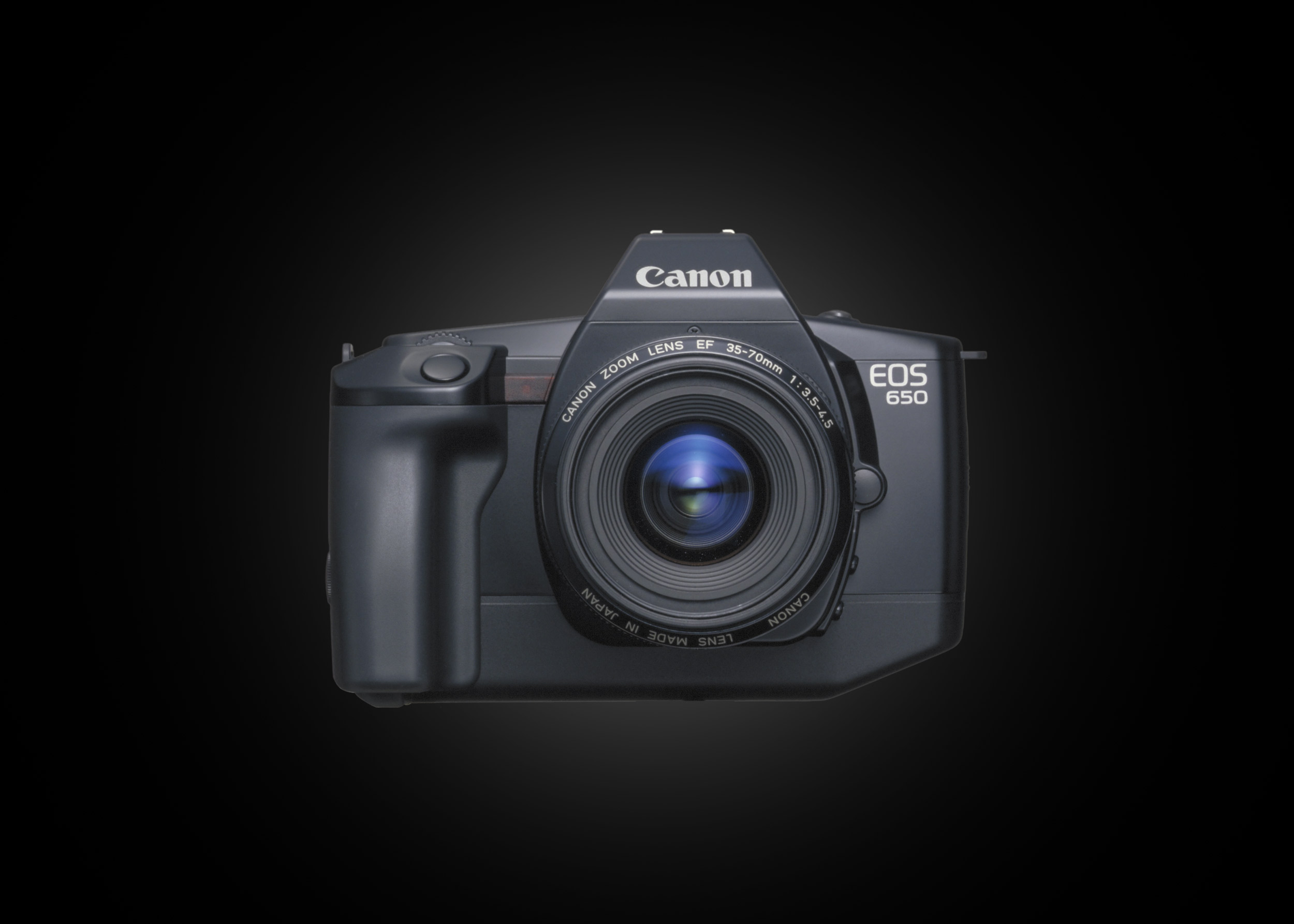 През март 1987 г. серията EOS дебютира с модела EOS 650 – следващо поколение огледално-рефлексен фотоапарат (SLR) с автоматичен фокус, използващ първия в света изцяло електронен байонет за обективи. Впоследствие Canon продължава да разработва иновативни продукти и технологии, които поставят бързината, комфорта и качество на изображението на първо място. Примери за това са професионалния модел EOS-1, представен през 1989 г., и EOS 500, представен през 1993 г. – разширявайки портфолиото на серията EOS към по-голяма потребителска група.