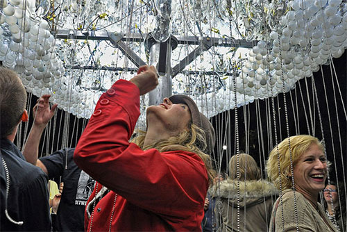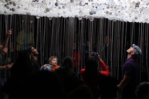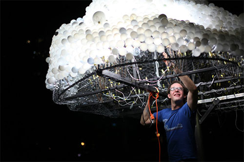CLOUD е интерактивна скулптура, създадена от 5 000 домашни крушки, която приканва зрителите й да се заиграят с дъжда от конци, включвайки и изключвайки нейната светлина.