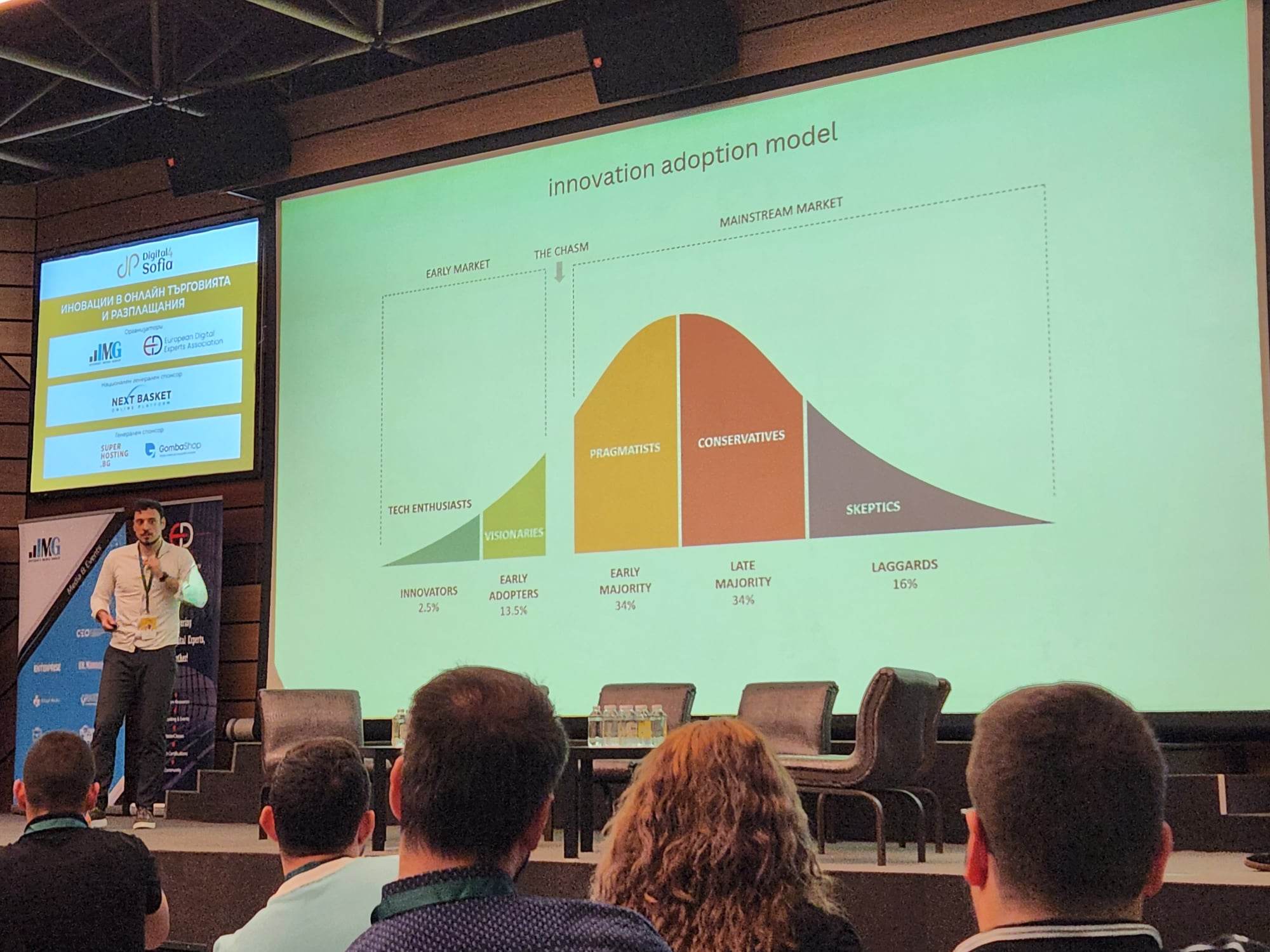 Първата лекция, която участниците на Digital4Sofia имаха възможност да чуят, беше на сръбския експерт по електронна търговия Ivan Kordic, който разкри как работи създадената от него платформа Shoppster. Той разказа за разработена от екипа му уникална стратегия за онлайн пазаруване, валидна за пазарите на Сърбия и Словения. Тя включва използването на машинно обучение за създаване на по-добро представяне на продуктите и персонализация.