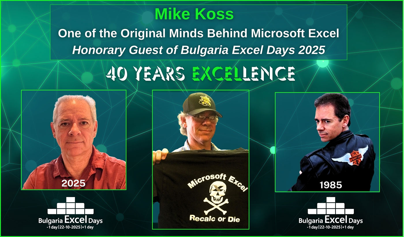 Eдин от главните разработчици, дали своя принос за появата на Microsoft Excel през 1985 г. Майк Кос, ще бъде почетен гост на международната конференция Bulgaria Excel Days, посветена на 40-та годишнина от създаването на легендарния продукт, който днес се ползва от близо 1,5 млрд. души по целия свят. Той ще поздрави участниците в събитието на 22 октомври, и ще сподели свои спомени от времето, когато е работил като програмист в първият Excel екип на Microsoft преди 40 години.