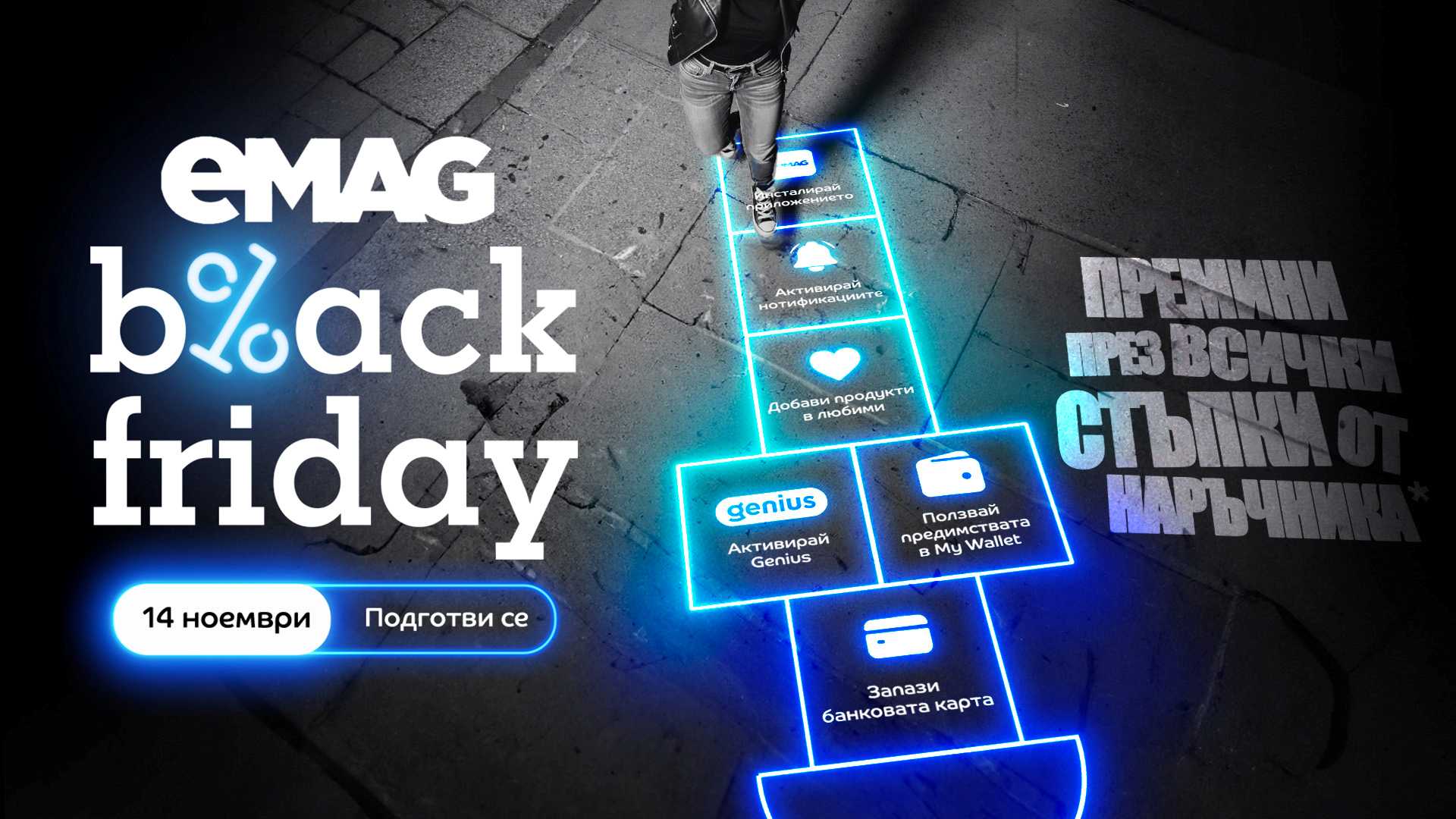 Онлайн гигантът eMAG стартира своята eMAG Black Friday кампания рано сутринта на 14 ноември. Предлаганите продукти надвишават 40 милиона продукта на склад и включват артикули, както от самия eMAG, така и от стотици Marketplace търговци в платформата. Покритите категории са широки: смартфони и телевизори, Hi‑Fi аудио, фотооборудване, ИТ и електроника, малки и големи домакински уреди и много други – всичко на едно място и на специални цени, валидни за кампанията.