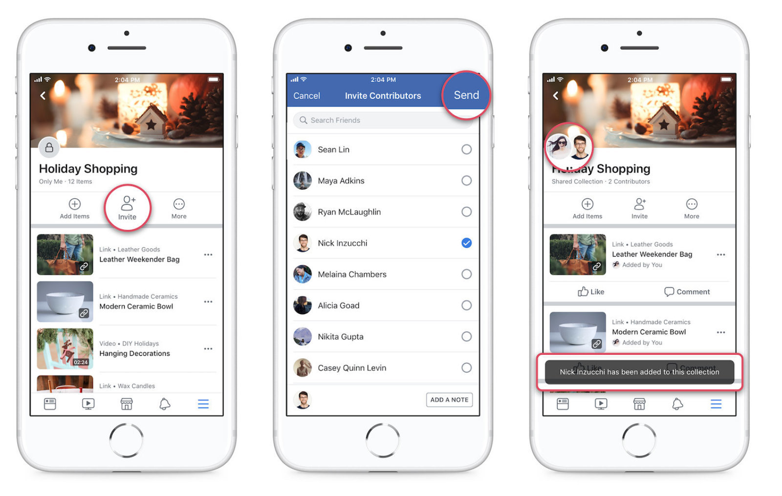 Facebook добави нова функция точно навреме за празничния сезон. Вече можете да споделяте създадени отметки, които обхващат публикации от приятели, или страници, гледане на клипове, или обяви в Marketplace. Единственото, което трябва да направите е да поканите хората, които искате да се присъединят и те също ще могат да добавят отметки от модните съвети до подаръците, вписвайки се още по-добре в социалния модел на мрежата.