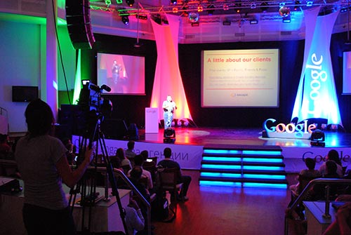 Google Engage Day продължи с още няколко презентации, включително тази на Катерина Арнаудова (AdWords акаунт мениджър за България). Събитието завърши с коктейл за всички участващи, като от Google предвидливо се бяха погрижили да не липсва нищо от масите.