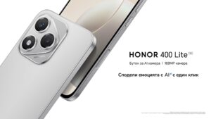 HONOR днес обяви пускането на пазара на HONOR 400 Lite, надежден смартфон, който въвежда изкуствен интелект в мобилната фотография и в технологията на дисплея. Оборудван с бутон за AI камера (AI Camera Button) за интуитивен контрол на камерата и възможности за интелигентно виждане, мощна 108MP основна камера с усъвършенствани функции за мащабиране и спиращ дъха 3500-нитов AMOLED дисплей със 120 Hz честота на опресняване, HONOR 400 Lite обещава несравнимо потребителско изживяване.