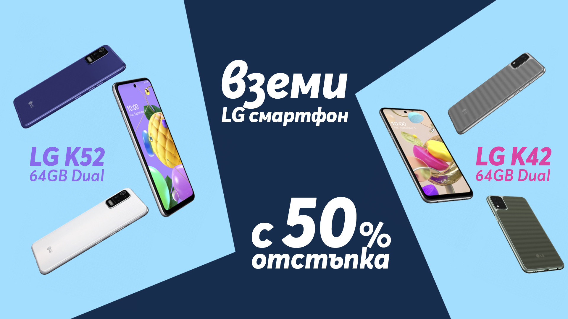 Теленор България предлага 50% отстъпка на всички телефони с марката LG K42 и LG K52 до 31 юли. От офертата могат да се възползват всички частни и бизнес клиенти на оператора. Намалението е валидно както при преподписването на договор, така и при нова активация на абонамент с планове Тотал+ и Тотал Макс.