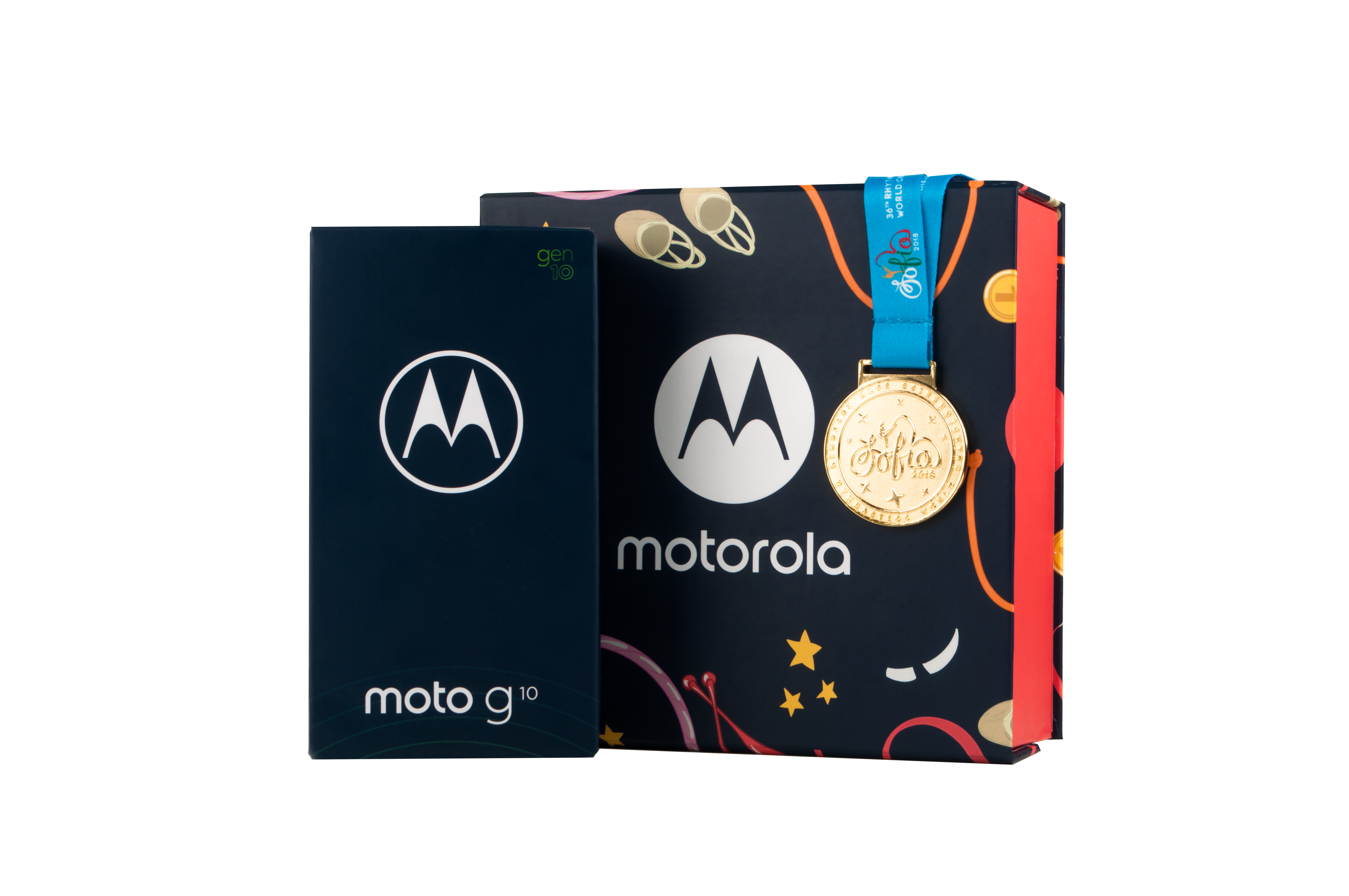 Motorola представя специалния колекционерски Пакет за шампиони, който включва новообявения смартфон moto g10 с четворна 48MP камера, с която потребителите да запечатат собствените си постижения и страхотни изживявания и селекция колекционерски продукти, свързани с върховите моменти в българската художествена гимнастика. Motorola пренасочва печалбата от продажбите към Българската федерация по художествена гимнастика, с цел подпомагане на българския спорт и стимулиране на нови успехи.