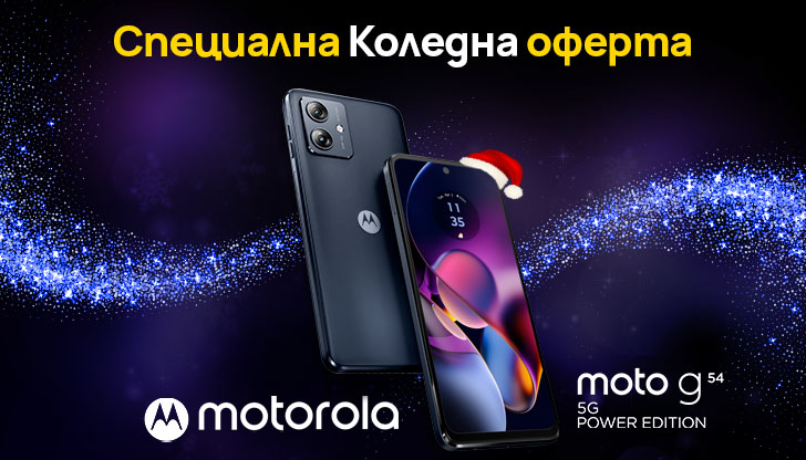 През декември Vivacom ще зарадва всички почитатели на марката MOTOROLA със специално предложение на MOTOROLA G54 POWER 5G. Смартфонът е перфектният подарък за онези, които търсят мощност, стил и свързаност на страхотна цена от 12,98 лв./месец на лизинг за 24 месеца с 24-месечен договор за план Unlimited 200.