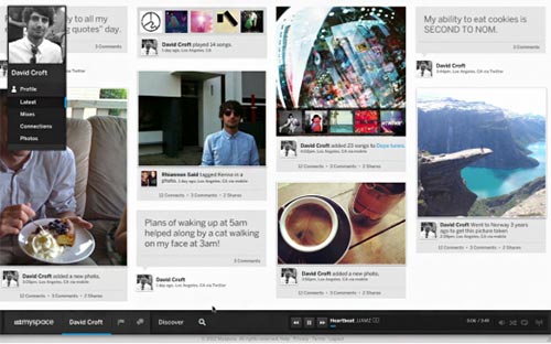 Запознайте се с предстоящия редизайн на Myspace! Една странна комбинация между музикалната услуга Last.fm, социалната мрежа за споделяне на снимки Pinterest и новата дизайн философия на Windows 8 – чиито успех е също толкова спорен, колко бъдещето на самия сайт.